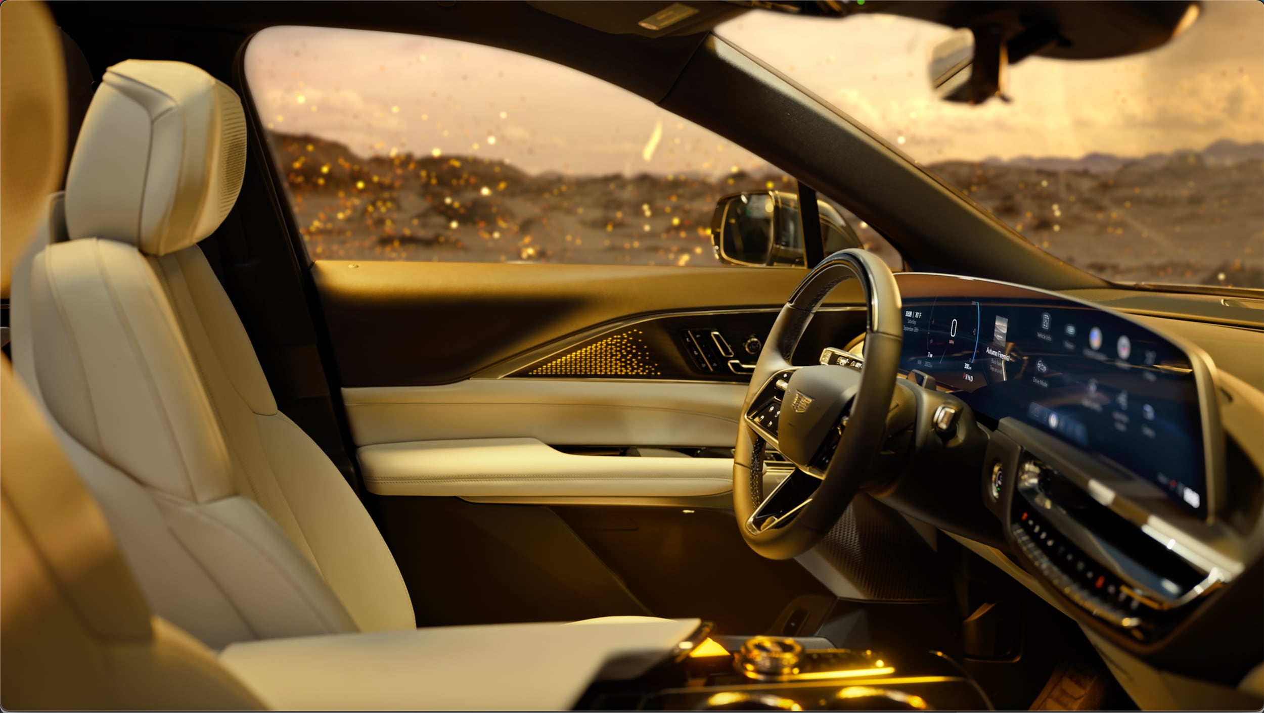 The LYRIQ's serene cabin will make driving feel right at home. Standard features set the stage with Inteluxe seats with perforated inserts, Santorini Blue accents, and Dark Paperwood décor. The 6-way power passenger and 8-way power driver seats include lumbar support, memory, and heated controls. Upgrading your trim level will unlock ventilated and lumbar massaging seats (Luxury 2), Oxford Stone Nappa leather seats (Luxury 3), and a panoramic fixed glass roof with power shade (Sport 1).